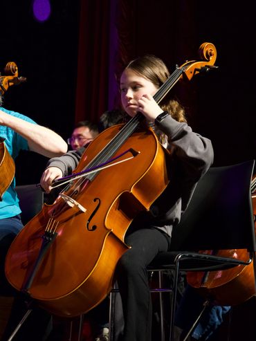 Cello Ensemble playing at the Kaiapoi Library, 23 May 2024